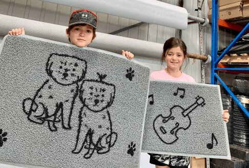 Loan and Kelia Lafontaine are two young entrepreneurs whose dad isn’t far from the Axess Group organigram (Do you see a family resemblance?) Their small business project is to create custom, handmade carpets from the remnants of commercial carpets.